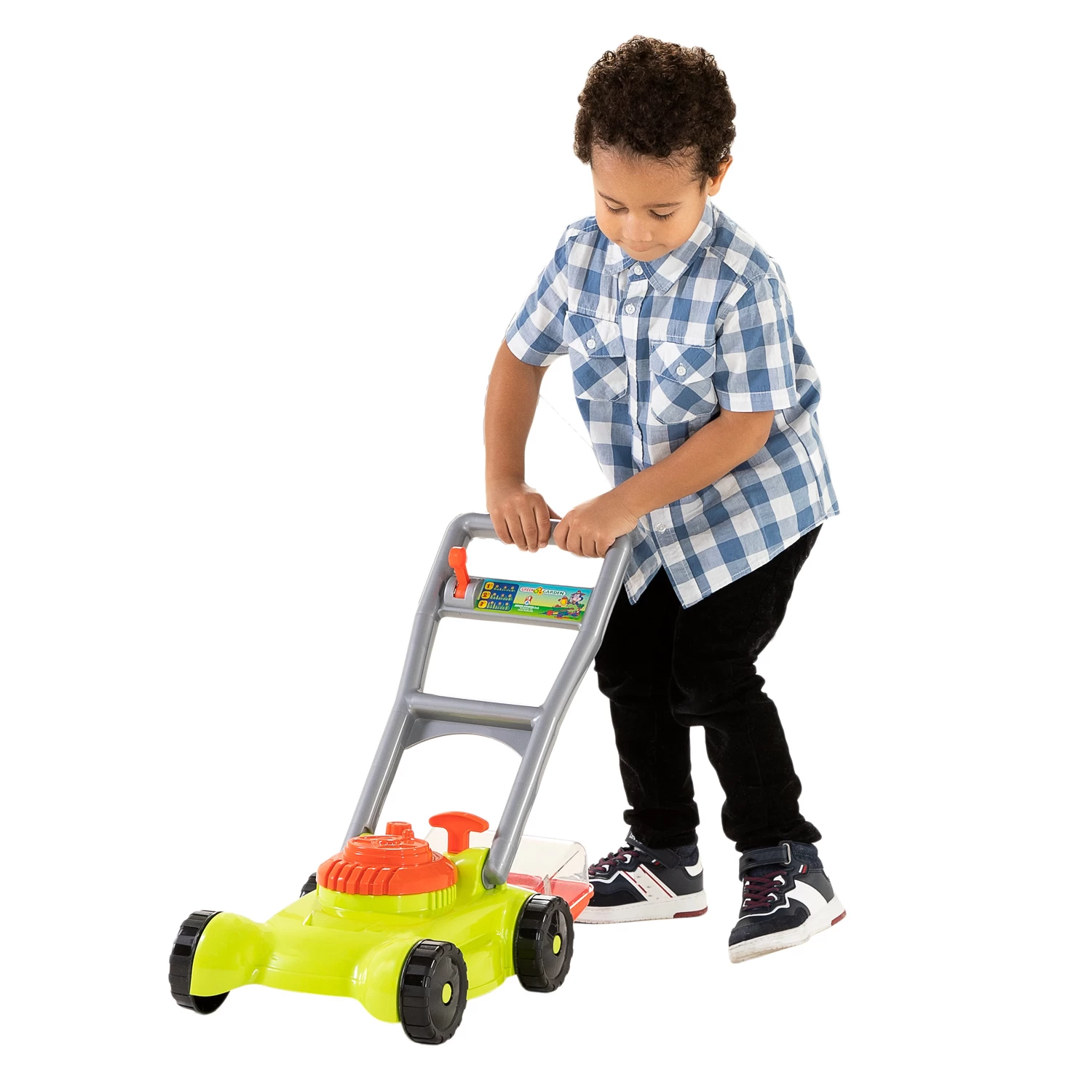 Help papa of mama mee in de tuin met deze kunststof grasmaaier. De grasmaaier is uitgevoerd in frisse kleuren en opvouwbaar. Hierdoor berg je de grasmaaier gemakkelijk op. Aan de achterkant zit een opvangbak met ‘gras’. Het rad in de bak draait rond, zo lijkt het net alsof het gras echt gemaaid wordt.