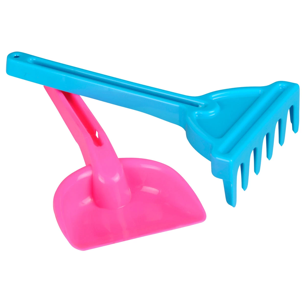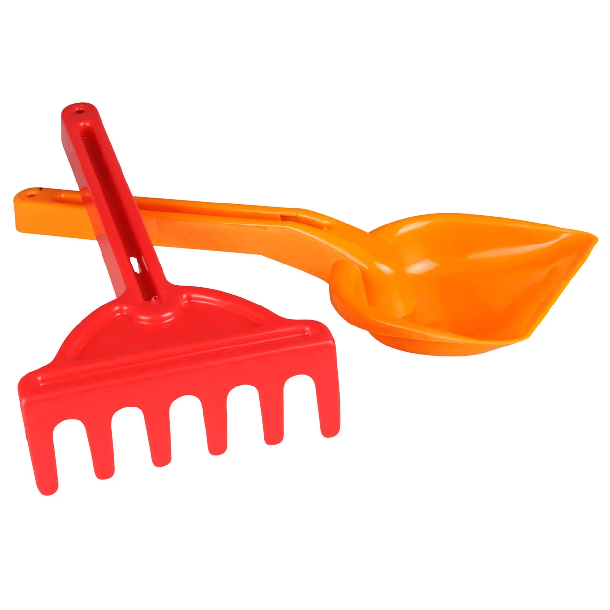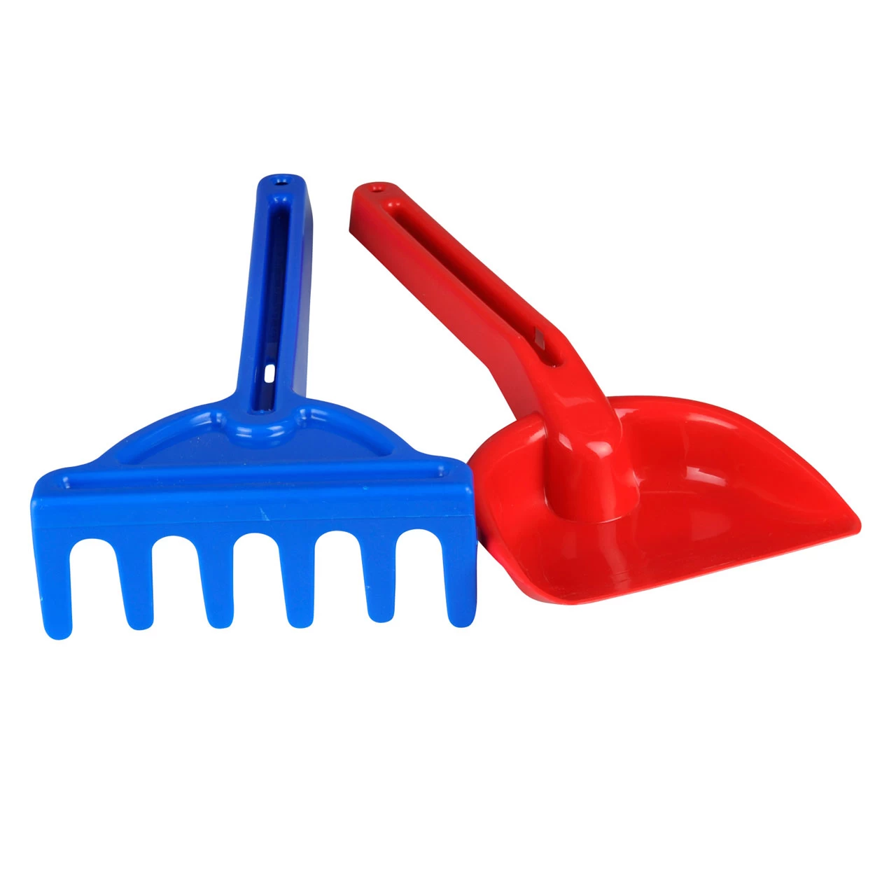 Kunststof schepje en hark die door middel van een kliksysteem aan elkaar te bevestigen zijn.