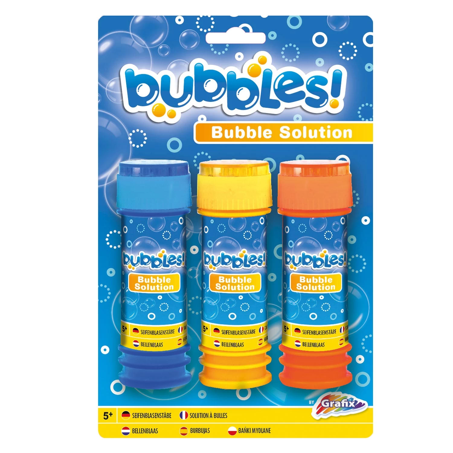 Bij dit artikel krijg je niet één maar drie bellenblazen! Je hebt eindeloos bellenblaas plezier met de blauwe, gele en oranje bellenblaas. Lukt het jou om een bel te blazen en deze weer op te vangen met het stokje? In de dop van de bellenblazen zit een geduldspelletje.