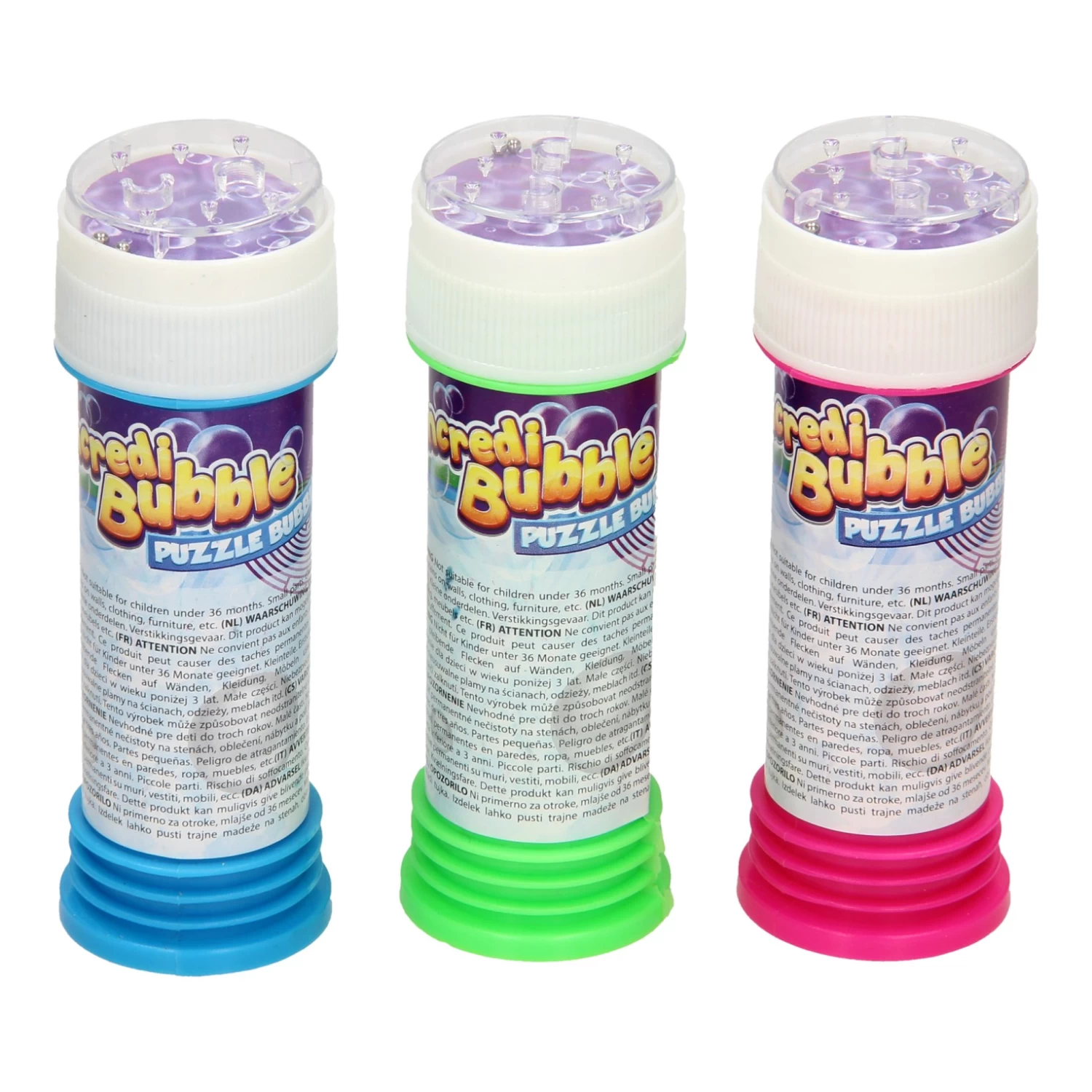 Blaas de mooiste bellen met deze incredible bubble bellenblaas! In de dop van de bellenblaas is een geduldspelletje verwerkt. De set bestaat uit 48 stuks bellenblaas met elk een inhoud van 50 ml.