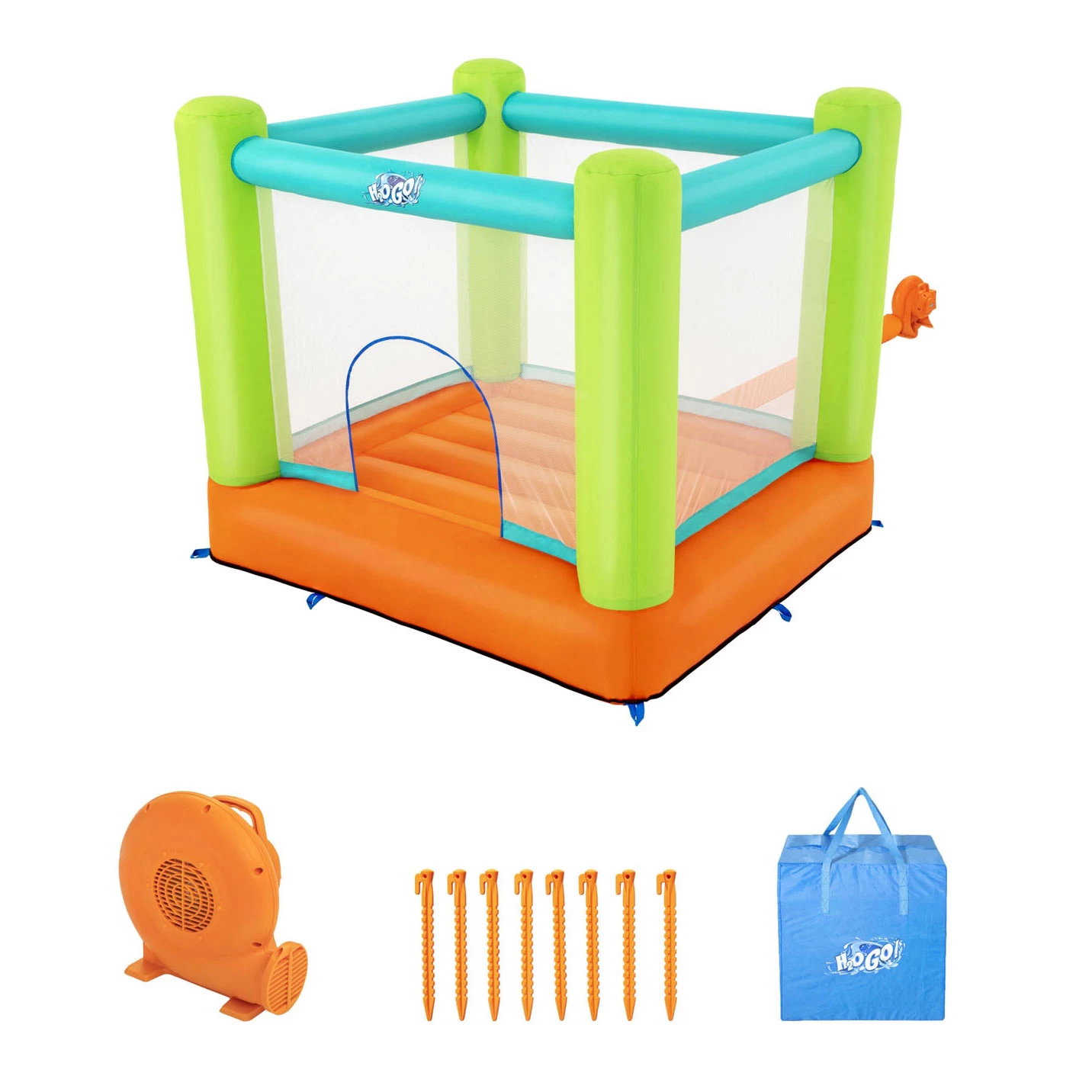 Pak een gymzaal vol plezier uit met het H2OGO! Jump and Soar springkasteel! De meegeleverde blazer blaast het springkasteel op in minuten, wat ouders tijd en moeite bespaart! Het kasteel eenvoudig op te zetten en heeft ook tal van veiligheidsvoorzieningen waar ouders dol op zullen zijn. De zijwanden van gaas houden kinderen veilig, terwijl ouders ze ook altijd kunnen zien. Met één opening voor in- en uitgang kunnen ouders bijhouden wie er in en uit het kasteel gaat en kunnen kinderen sportief leren spelen. Dit springkasteel kan binnen of buiten worden gebruikt, zodat kinderen een leuke, veilige plek hebben om te verkennen en te spelen. Terwijl ze de hele dag door stuiteren, werken ze ook aan hun motoriek, stimuleren ze hun verbeeldingskracht en vergroten ze hun zelfvertrouwen en communicatieve vaardigheden. Ze zullen zoveel plezier hebben dat ze niet eens beseffen dat ze aan het leren zijn! Het Jump and Soar Springkasteel is het perfecte speelgoed voor het hele jaar door voor urenlang speelplezier.