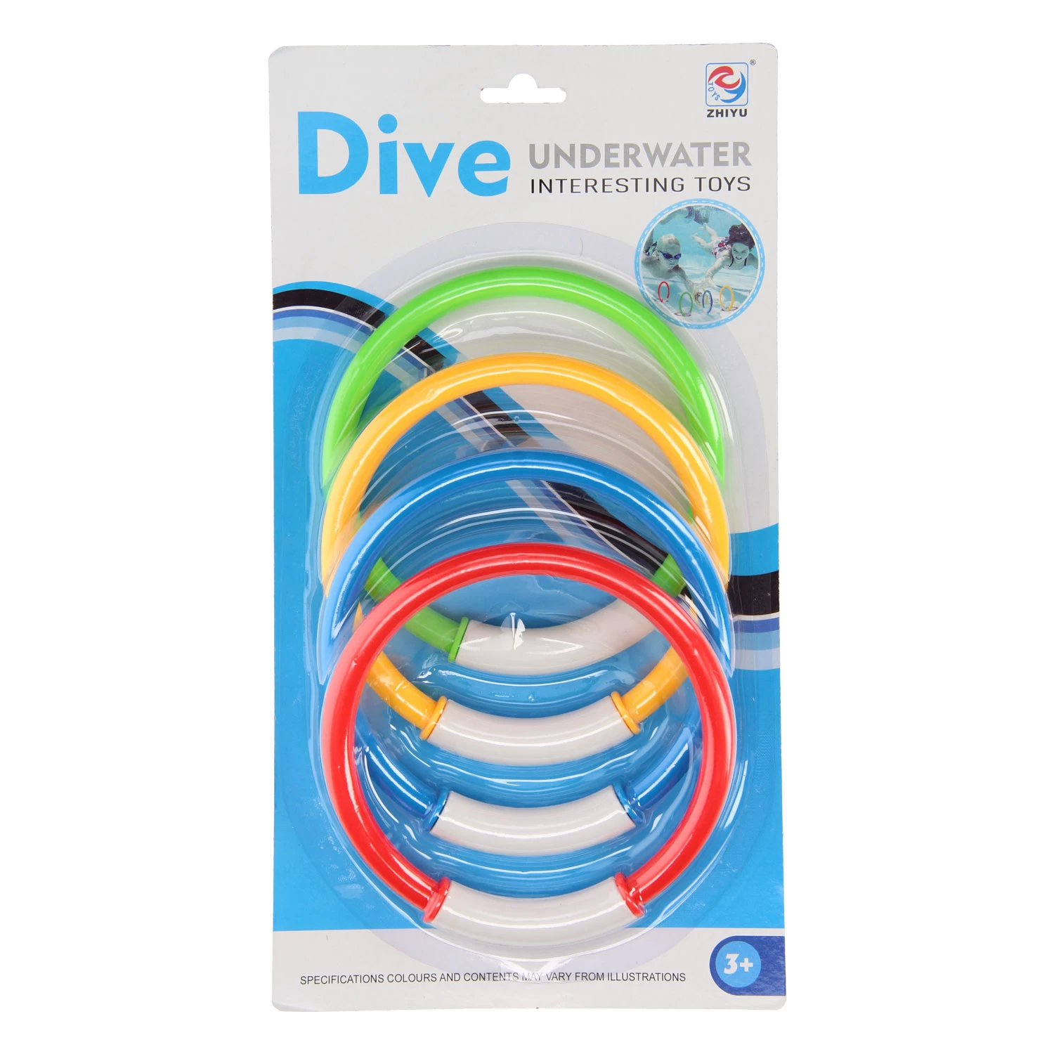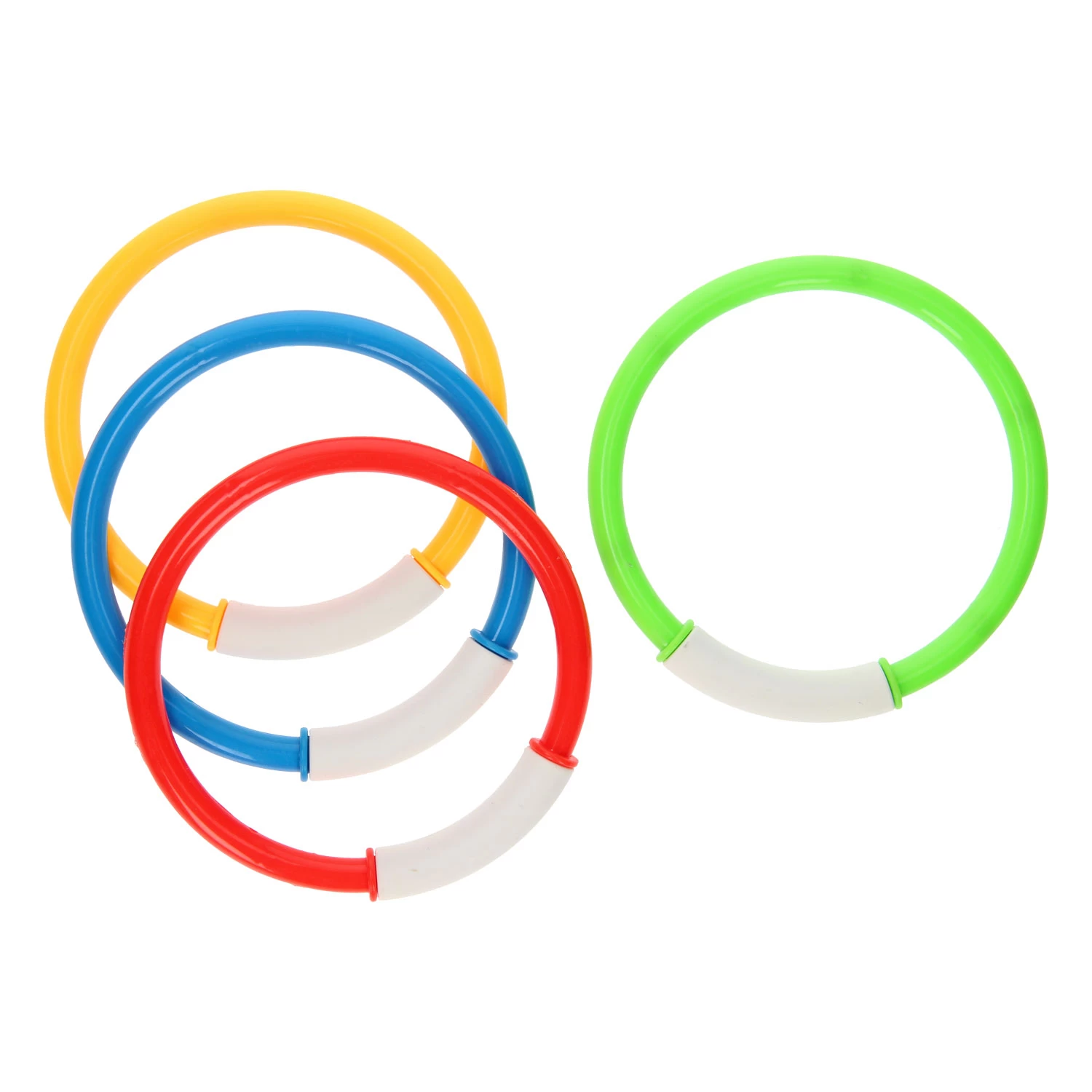 Train je duikkunsten en onderwaterzwem skills met deze vier duikringen! De ringen hebben vier verschillende, opvallende kleuren en zijn verzwaard, waardoor ze naar de bodem van het zwembad zinken. Duik in het water en breng de duikringen weer boven!