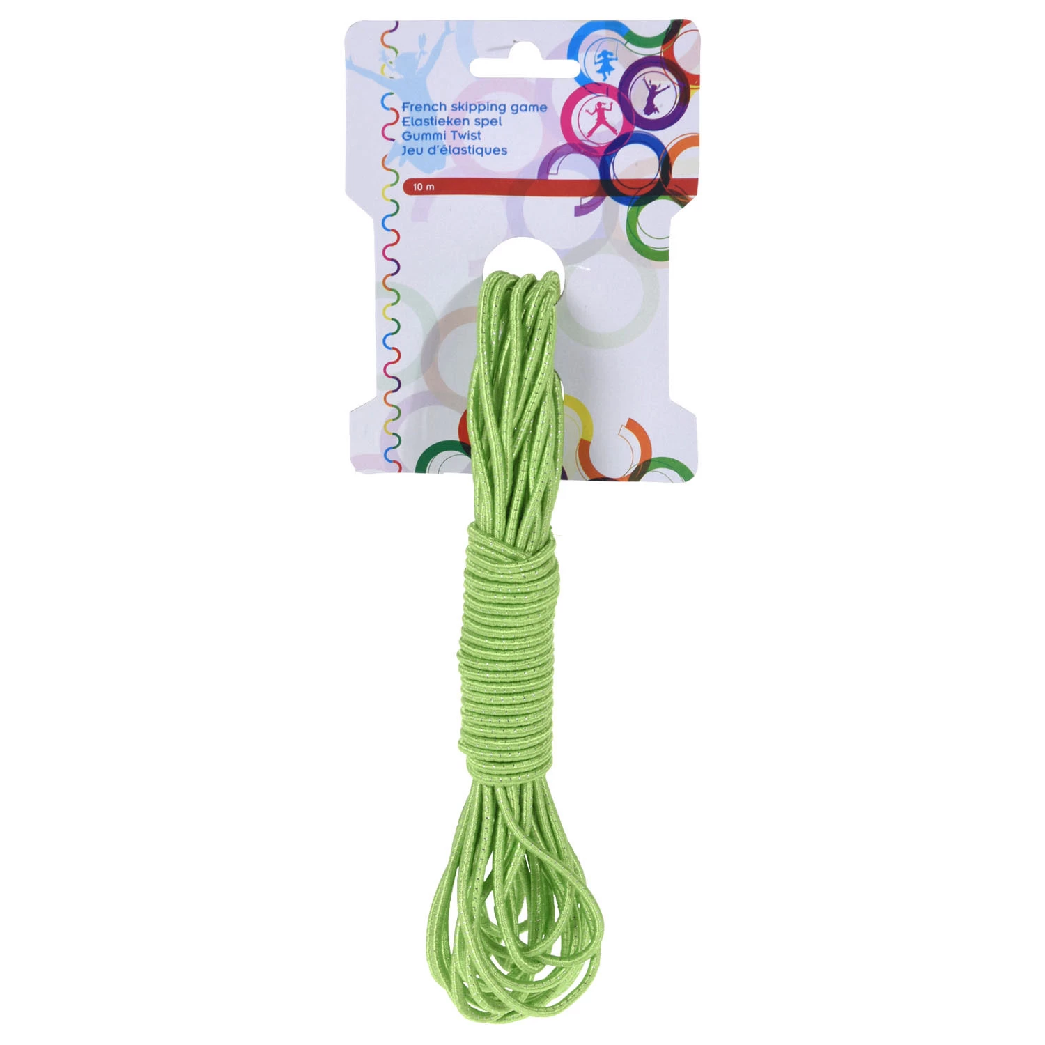 Elastieken: wie heeft dit vroeger niet gedaan met zijn vriendjes en vriendinnetjes? Of het nu met twee of in een groep is, het is altijd leuk om samen te doen. Het elastiek heeft een lengte van 10 meter en is verkrijgbaar in zes kleuren.