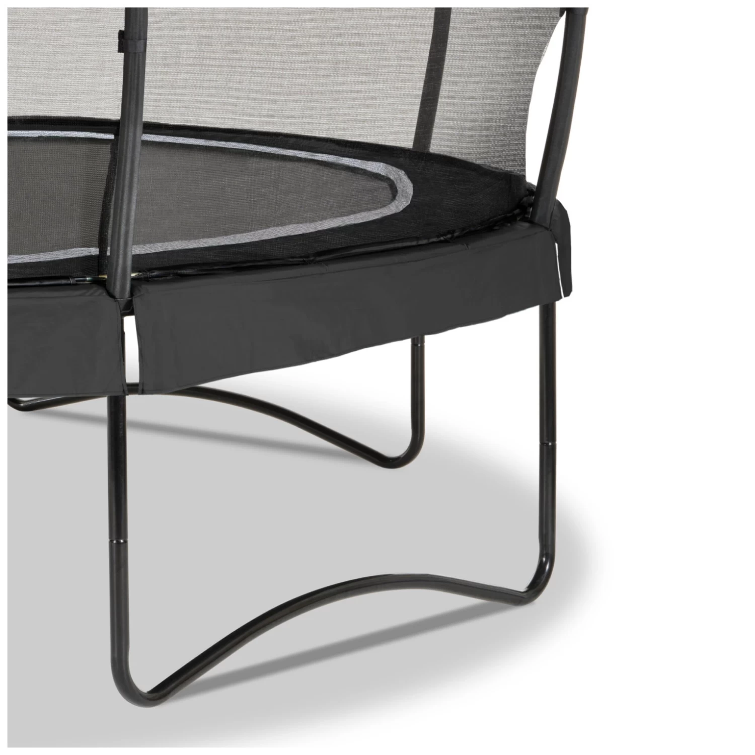 De extra lange dubbel conische veren van maar liefst 21,6 cm zorgen voor de perfecte sprong en een zachte landing. Door het gegalvaniseerde en gepoedercoate frame heeft de trampoline een lange levensduur. Glasvezelringen en gebogen palen houden het veiligheidsnet super strak in vorm en de extra dikke beschermrand met waterafstotende pvc-toplaag beschermt jou én de trampoline optimaal.