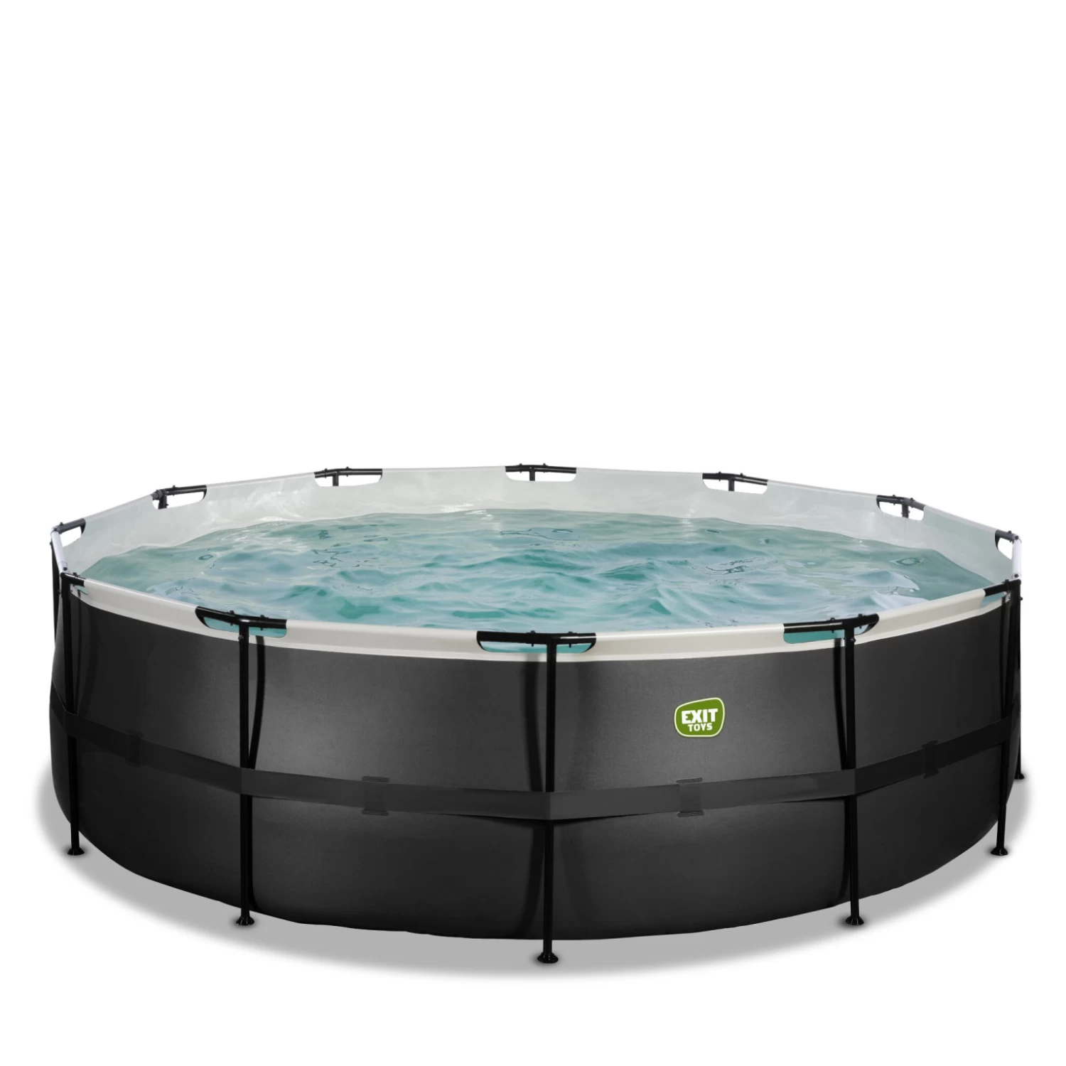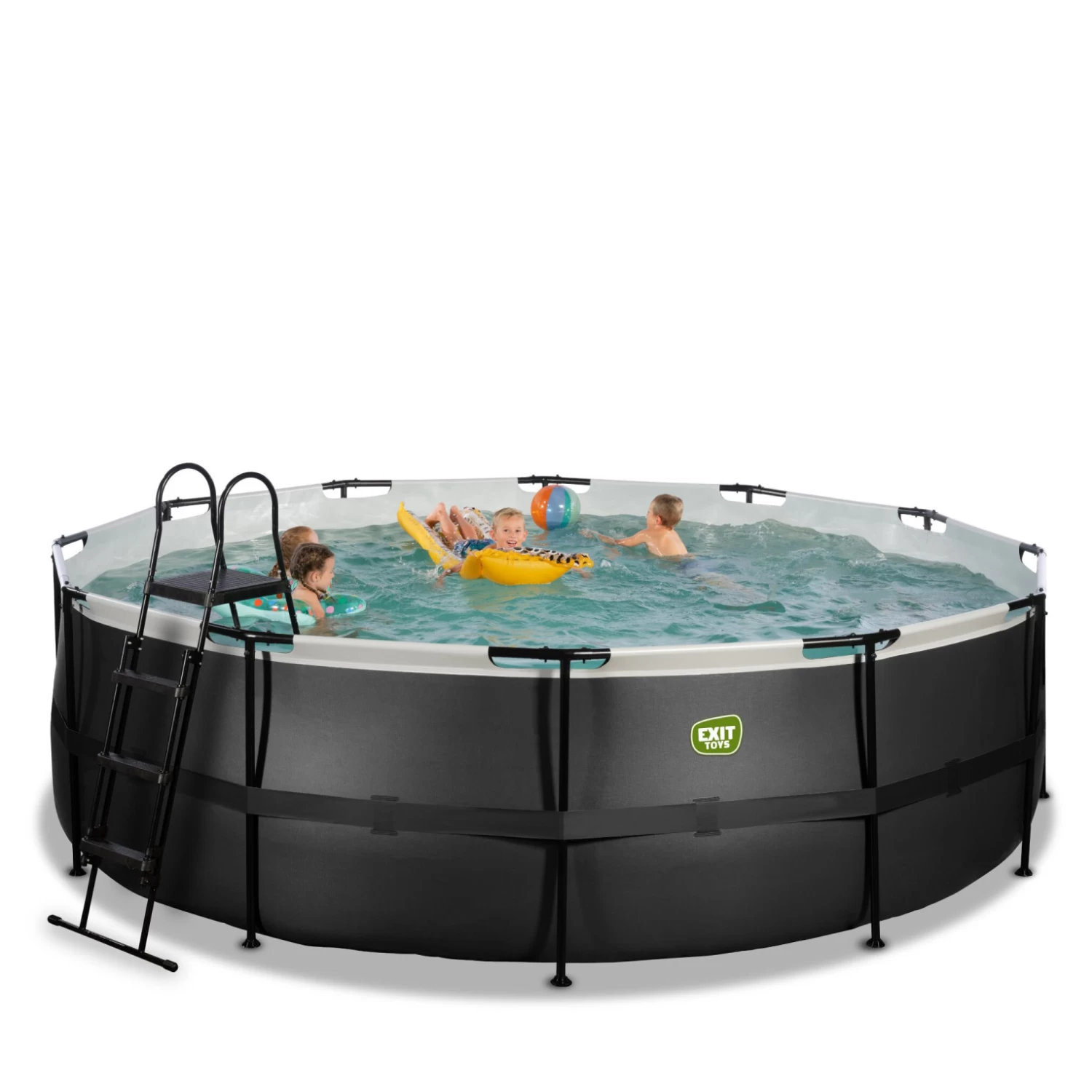Ontdek hoe stevig een rond opzetzwembad kan zijn: het gepoedercoate stalen frame en de sterke poten van het EXIT Black Leather zwembad zorgen ervoor dat het bad altijd stabiel staat en jarenlang meegaat. De meegeleverde filterpomp houdt het water schoon en in beweging zodat vervuiling van het water wordt tegengegaan.