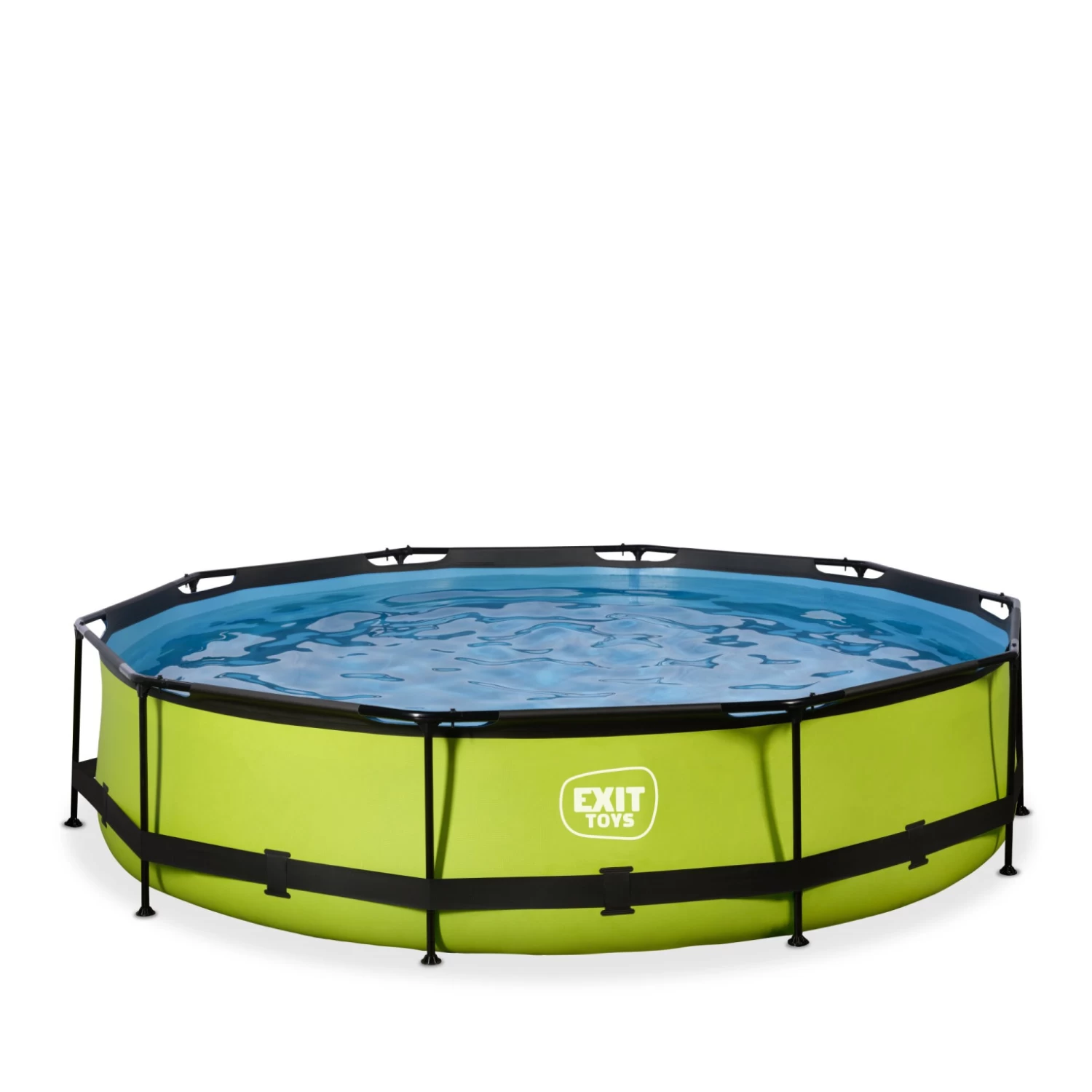 Het EXIT Lime zwembad ø360x76cm is een rond, groenkleurig frame zwembad. Het zwembad is standaard voorzien van een filterpomp en valt op tussen andere zwembaden door zijn frisse limoengroene kleur. Ontdek hoe stevig een rond opzetzwembad kan zijn: het gepoedercoate stalen frame en de sterke poten van het EXIT Lime zwembad zorgen ervoor dat het bad altijd stabiel staat en jarenlang meegaat. De meegeleverde filterpomp houdt het water schoon en in beweging zodat vervuiling van het water wordt tegengegaan. De vrolijke, felle kleur en het zwarte frame geven het Lime zwembad een unieke uitstraling. De binnenzijde van het zwembad is blauw, zodat je het frisse zwembad gevoel houdt.
