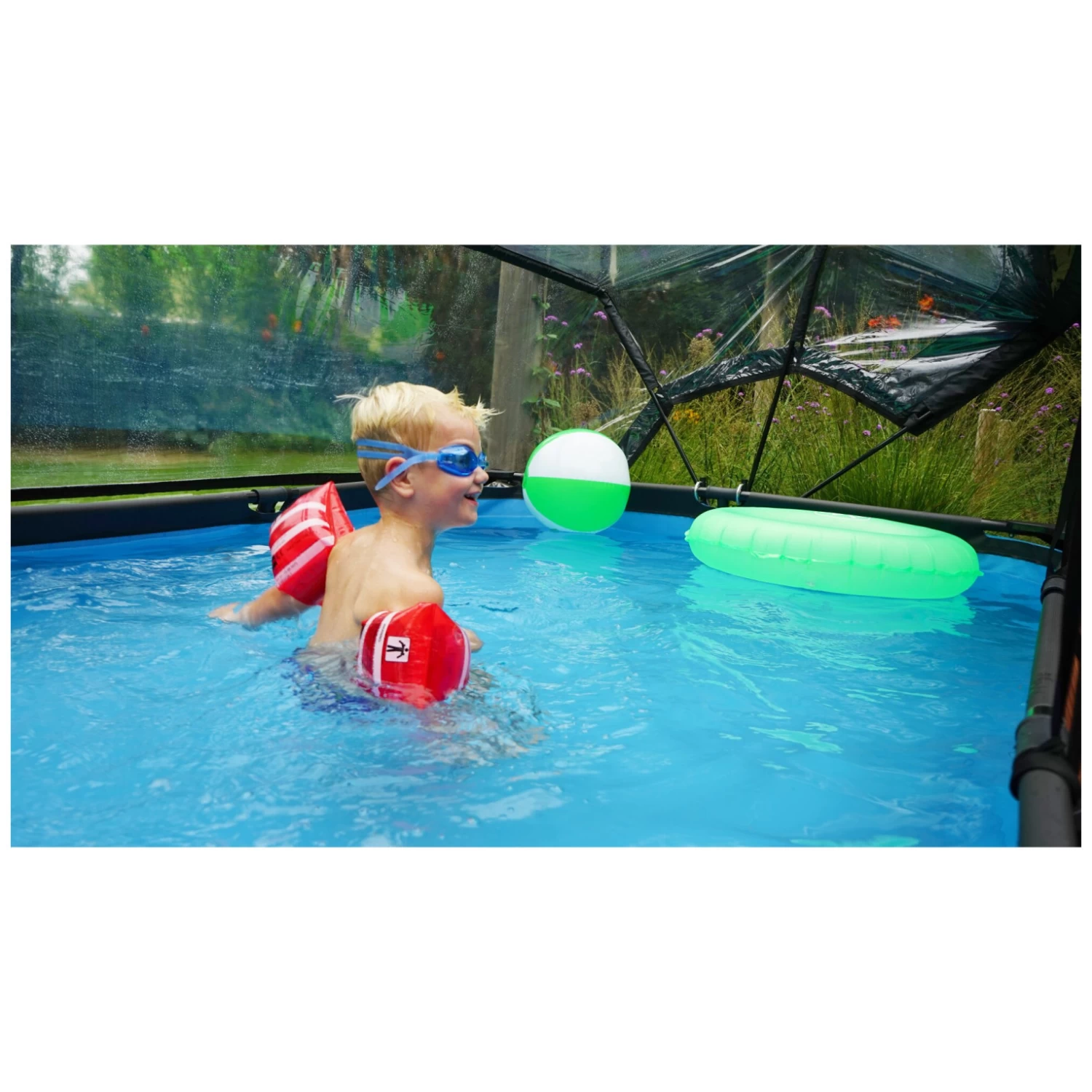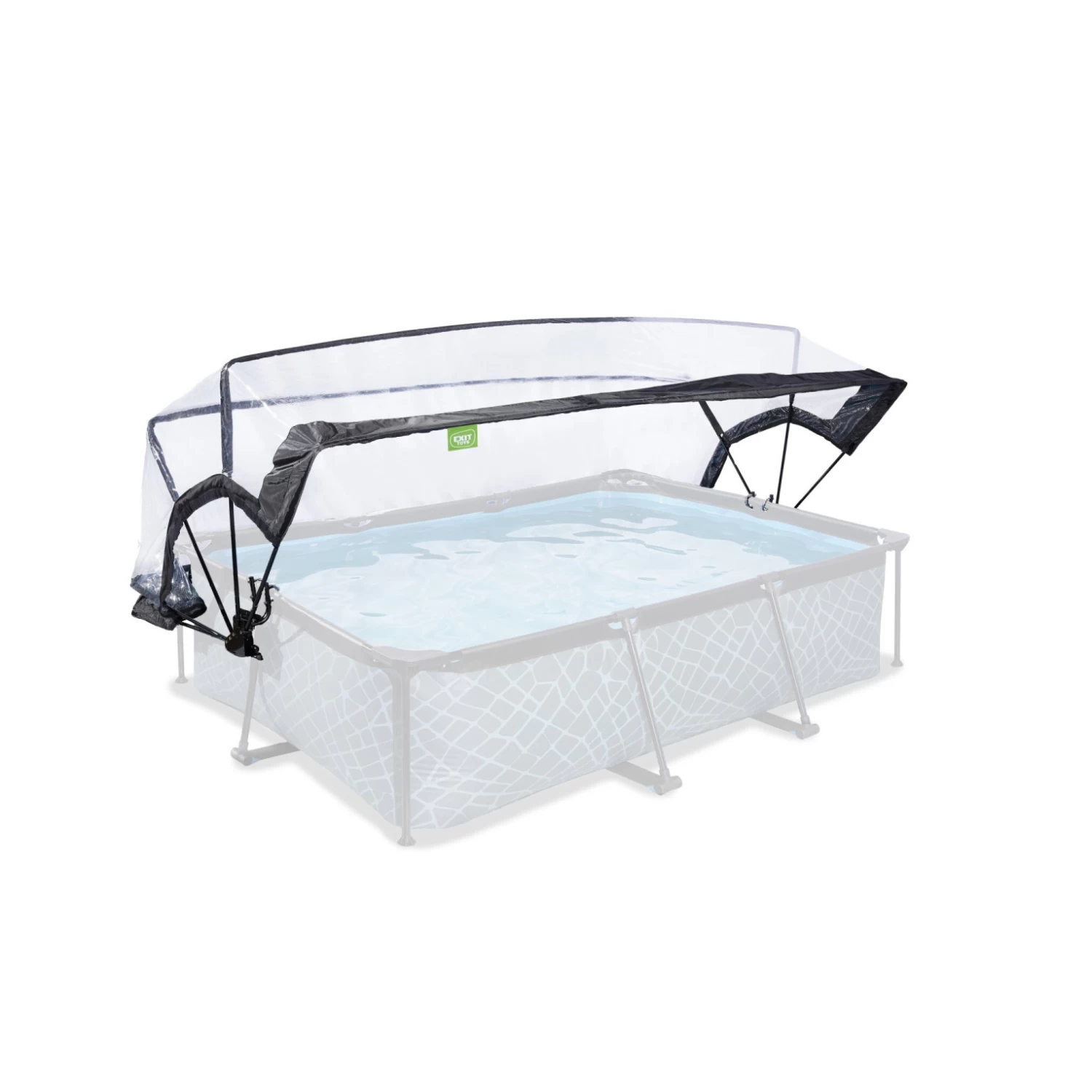 De EXIT zwembad overkapping is een multifunctionele overkapping voor op je zwembad. De overkapping is geschikt voor rechthoekige EXIT zwembaden én voor veel andere frame zwembaden. Met de EXIT overkapping voor zwembaden ben je niet langer afhankelijk van de weersvoorspellingen en heb je zelfs met minder mooi weer plezier van je zwembad. De overkapping is tegelijkertijd een duurzame oplossing voor het verwarmen van het water. Wanneer het zwembad niet wordt gebruikt, kun je de kap met de meegeleverde banden stevig aan het bad bevestigen. Zo zorg je er meteen voor dat er geen vuil in het water kan komen.