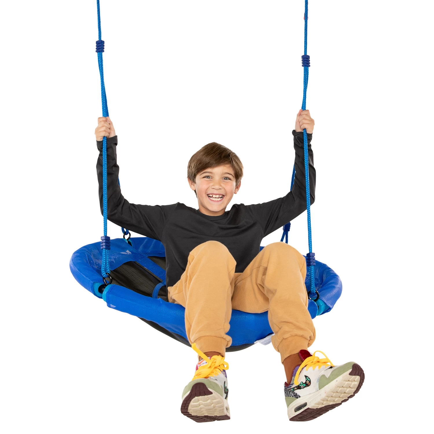 Deze HUDORA nest-schommel is een leuke nieuwe manier om te schommelen. Je kunt erop zitten of liggen en wanneer het maximale draagvermogen van 50kg niet wordt overschreden, geschikt voor meer kinderen tegelijk. De diameter is 90cm en door het meegeleverde montage systeem is de schommel in hoogte verstelbaar. Het materiaal is sterk en weerbestendig. Geschikt voor kinderen vanaf 5 jaar.