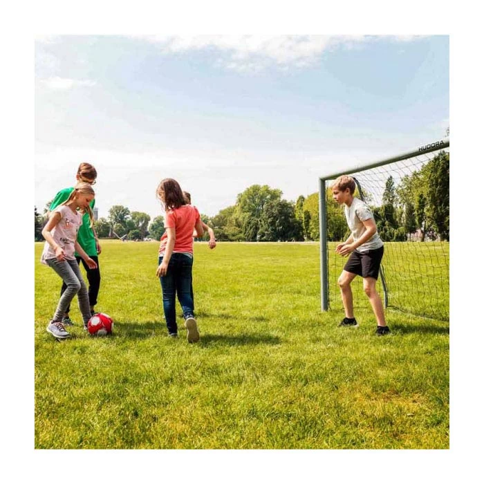 HUDORA voetbdoel expert 3000. het stabiele Expert voetbaldoel van HUDORA verandert elke tuin in een kindvriendelijk voetbalveld. De Expert is bijzonder robuust door de 75 mm dikke paaldiameter en de schroefverbindingen. Het weerbestendige, fijnmazige polyester net is ook bestand tegen de hardste schoten van de jonge spitsen. Het hoogwaardige voetbaldoel is geschikt voor vrije tijd en training – met een veilige stand dankzij de meegeleverde grondharingen en weerbestendig dankzij het gepoedercoate stalen buizenframe. Afmeting: 300 x 200 x 120 centimeter.