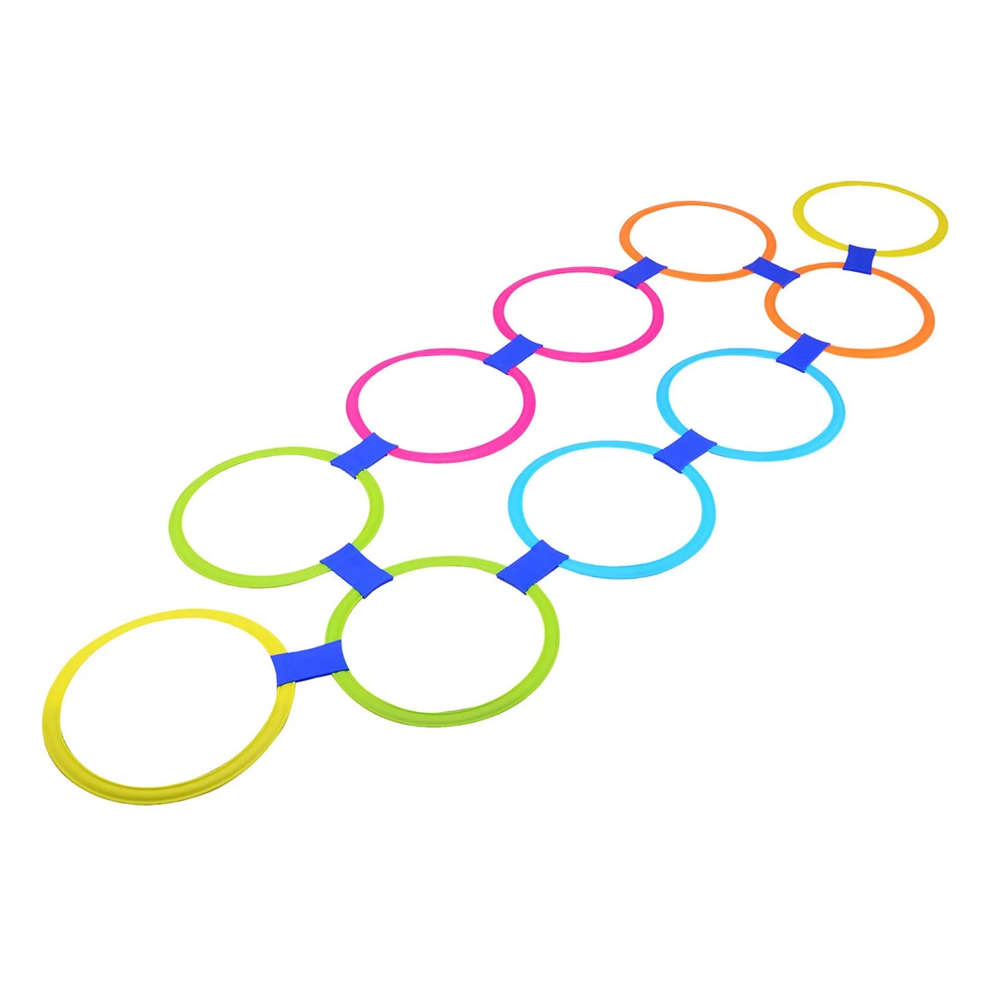 Dit leuke hinkelspel is ideaal voor binnen én buiten, en ook nog eens makkelijk mee te nemen. De set bevat 10 ringen en 10 koppelstukken waarmee je zelf een hinkelbaan in elkaar klikt. Verzin de mooiste hinkelbanen en maak het zo moeilijk als je zelf wil. De 10 ringen hebben de kleuren geel, groen, roze, blauw en oranje.