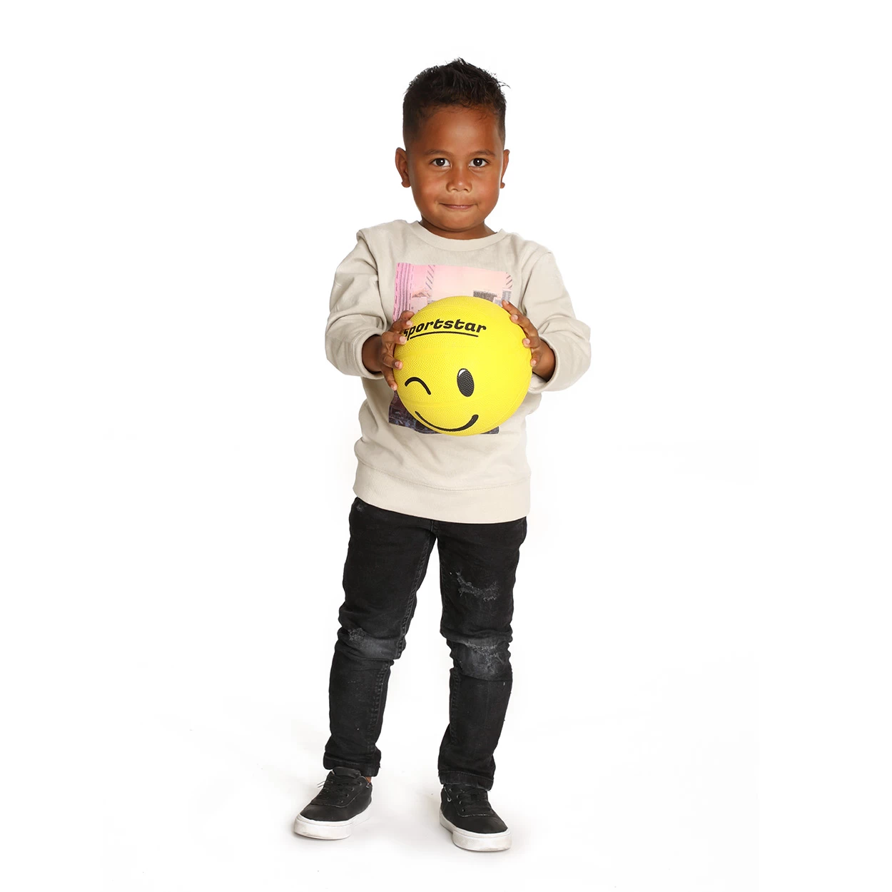 Rubber straatbal met lachgezicht.