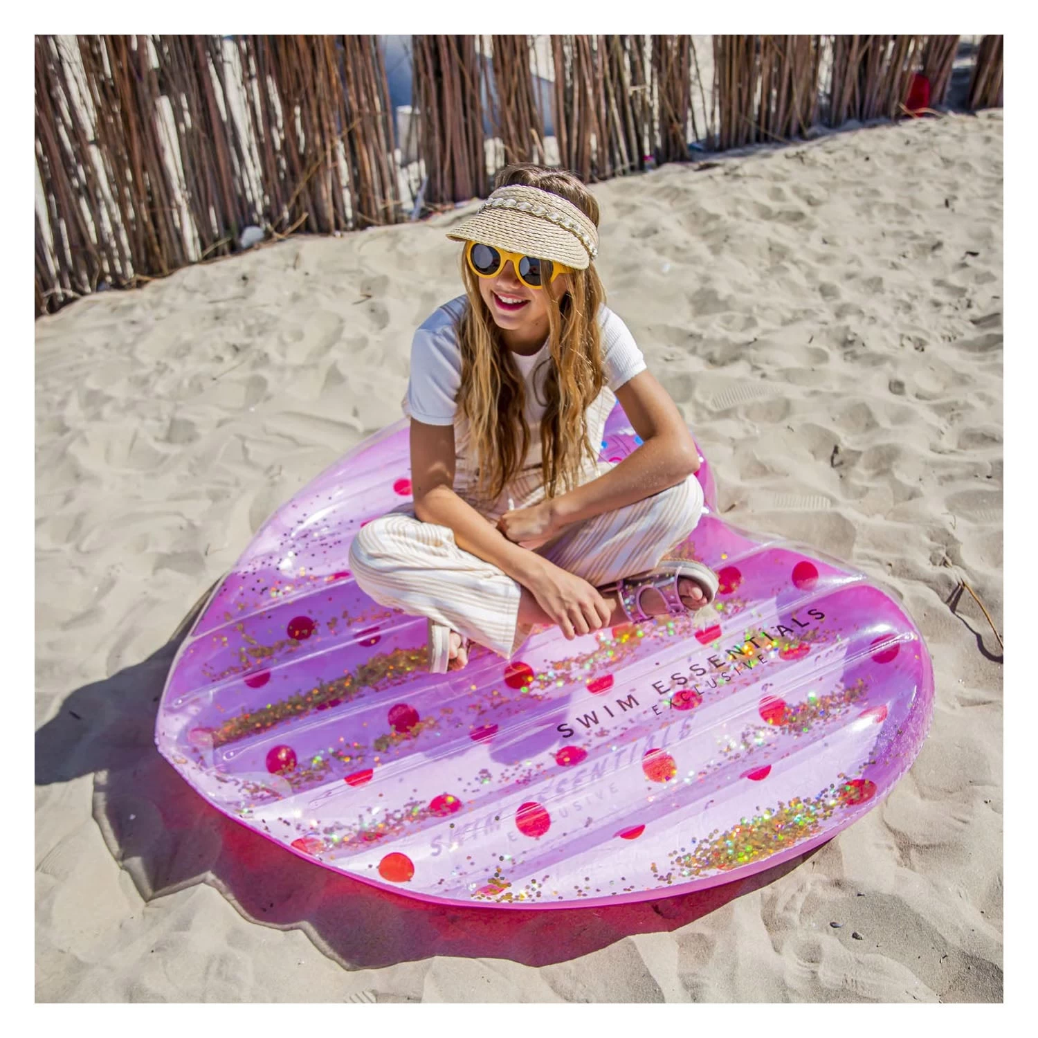 Het trendy Roze luchtbed met Rode stippen maakt jouw zomer nog beter! De glitters, de kleuren en de hartvorm maken dit zwembad luchtbed uniek. Het luchtbed is lekker groot, 150 x 100 cm, zo kun je gemakkelijk ronddobberen op het water. Het luchtbed is geschikt voor kids vanaf 6 jaar, maximale belastbaarheid 80 kg.