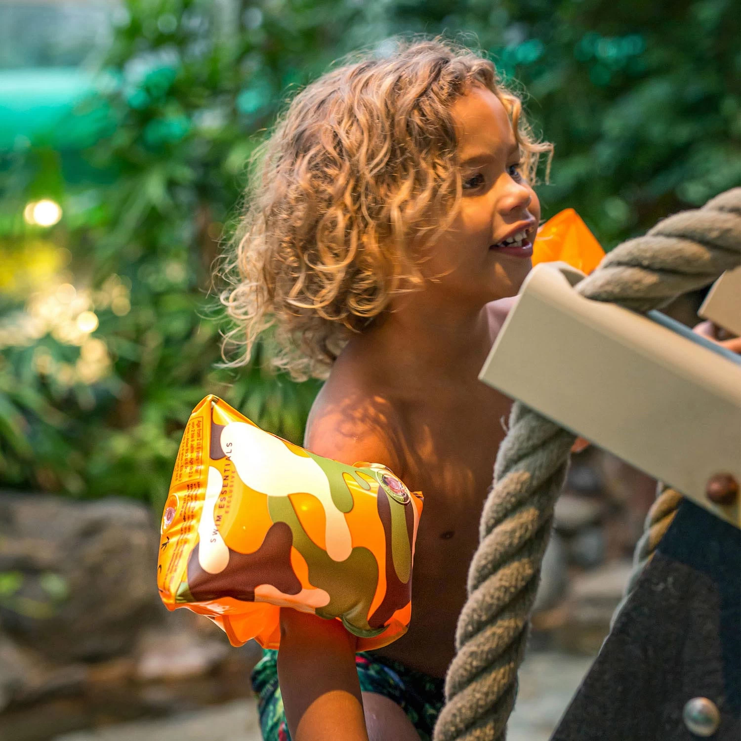 Met deze camouflage zwembandjes is je kindje veilig in het water en kan er lekker gespetterd worden. De zwembandjes zijn geschikt voor kinderen van 2 tot 6 jaar met een gewicht tussen de 15 en 30 kilo. De bandjes hebben een stoer, uniek design, waardoor ze goed opvallen in het zwembad of op het strand. De hippe zwembandjes laten je kinderen op een veilige manier spelen in het water en zorgen ervoor dat ze stralen van oor tot oor.