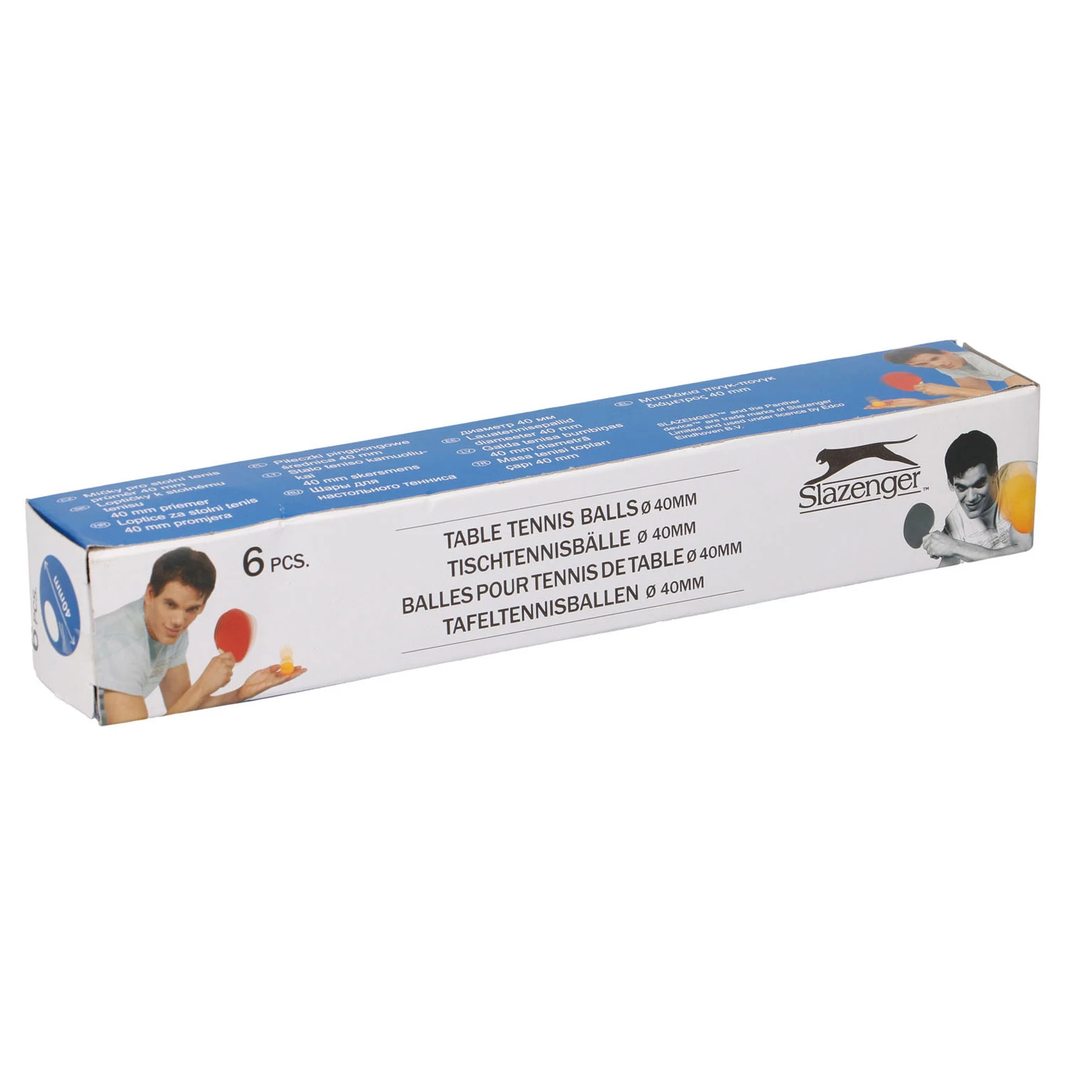 Set van 6 tafeltennisballen of pingpongballetjes met een doorsnede van 40 millimeter.