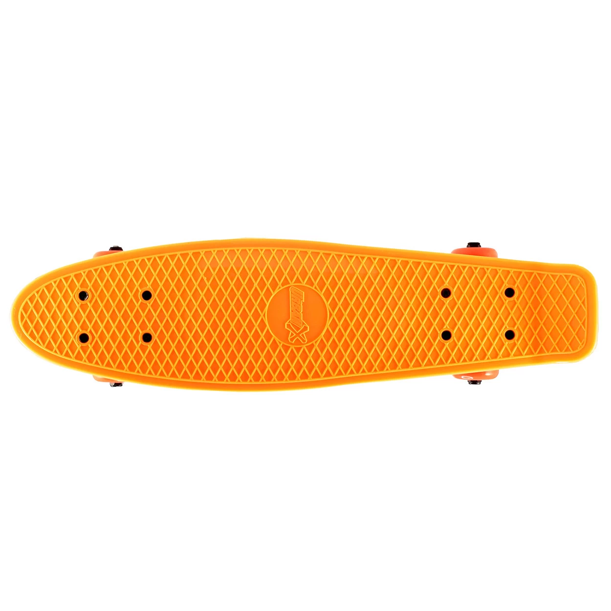 Oefen je skatekunsten op dit skateboard in de kleur licht oranje. Het kleine skateboard heeft een stevige bovenzijde met extra grip dankzij de structuur op de bovenzijde. Op de 4 soepele wielen race je het avontuur tegemoet! Maximaal belastbaar tot 50kg.
