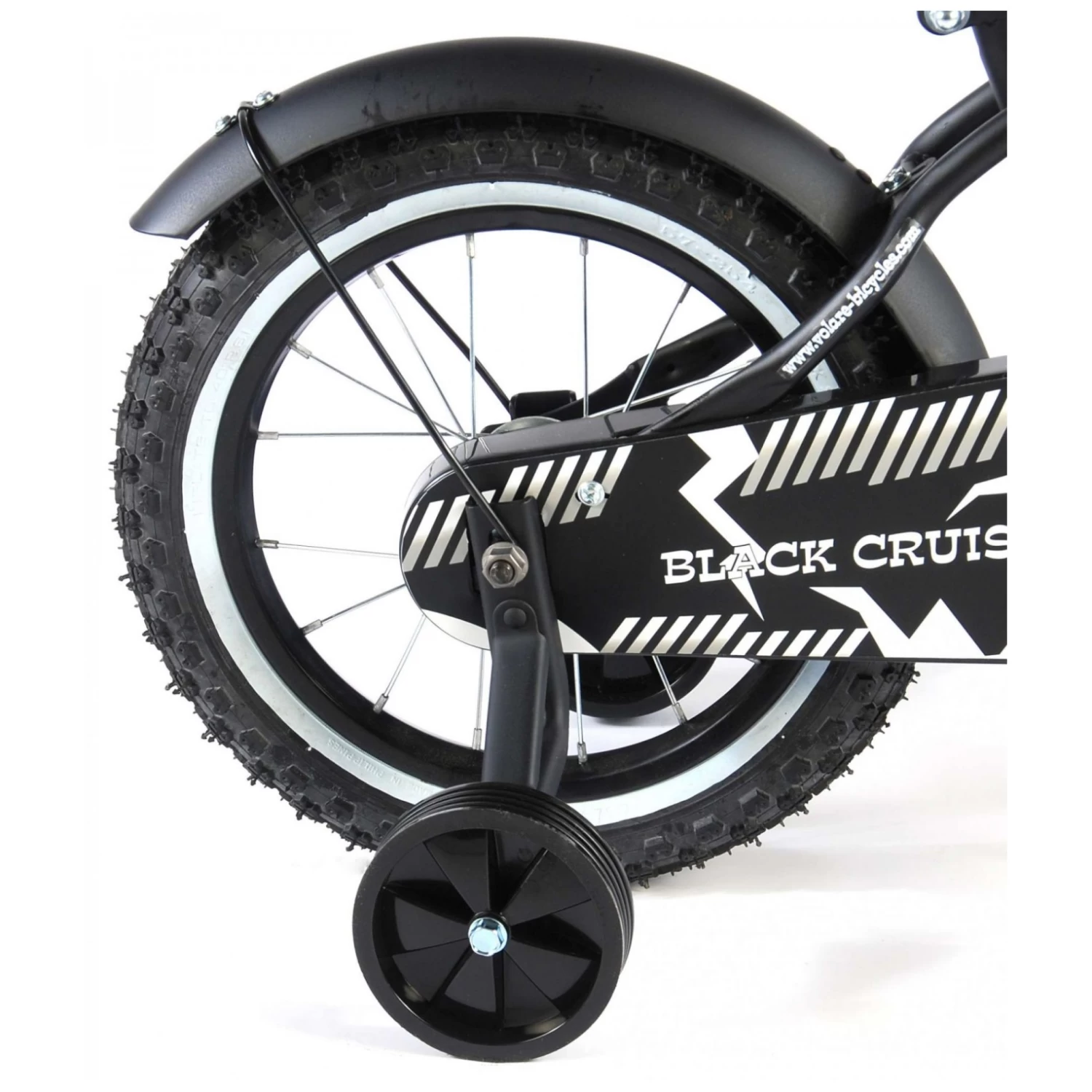 Volare Black Cruiser 14 inch kinderfiets. De Volare Black Cruiser is in mat zwart. In Amerika fietsen de stoere jongens langs de “Beach”. Dit wil natuurlijk elke stoere jongen, ook al is hij 3,5 jaar. Met stevige zijwieltjes om snel te kunnen leren fietsen. Topper! Deze fiets is voor 95% afgemonteerd, dus bijna fietsklaar. Wel zo gemakkelijk!