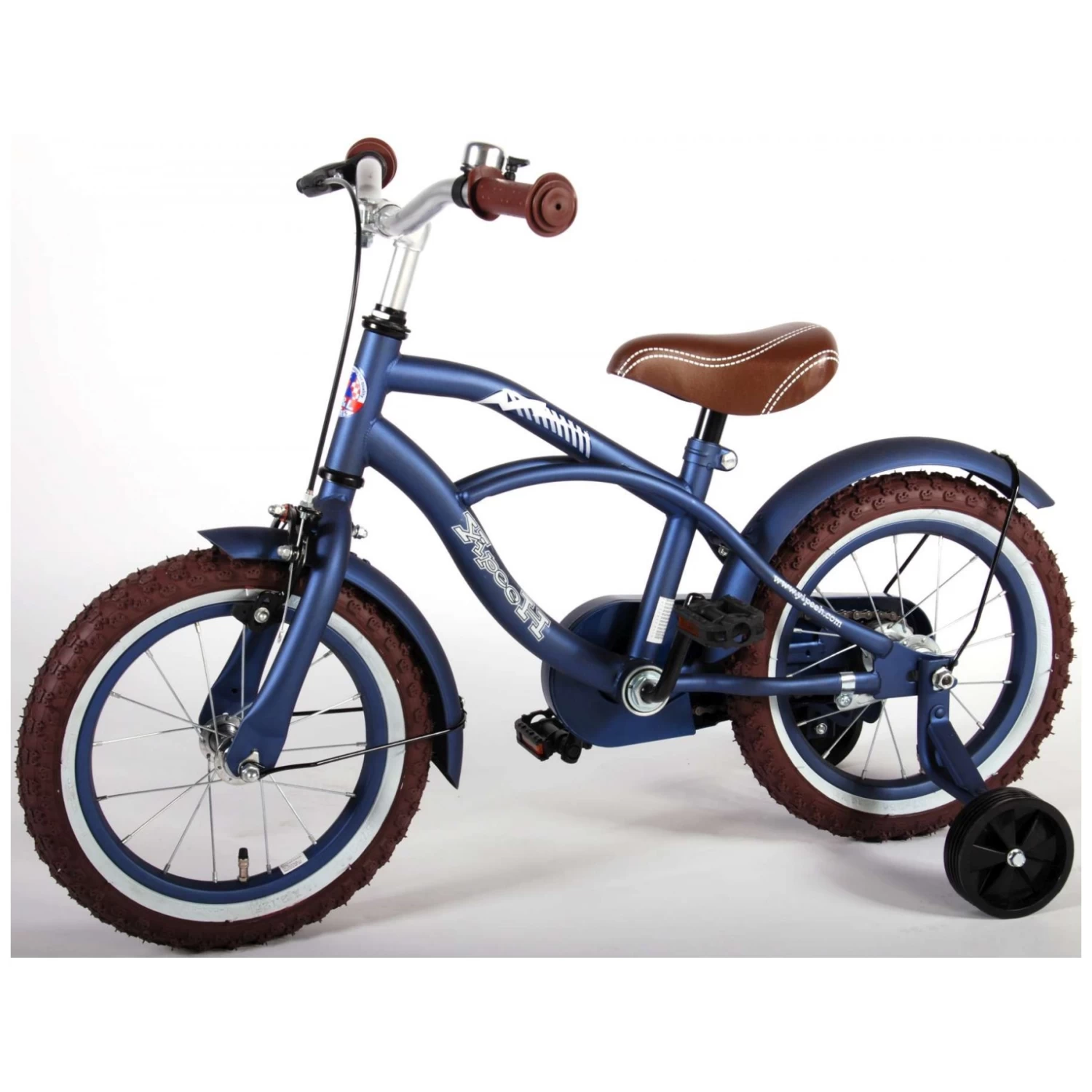 Volare Blue Cruiser 14 inch kinderfiets. De Volare Blue Cruiser is in speciaal mat blauw Jeans kleur gespoten. In Amerika fietsen de stoere jongens langs de “Beach”. Dit wil natuurlijk elke stoere jongen, ook al is hij 3,5 jaar. Met stevige zijwielen. Topper! Deze fiets is voor 95% afgemonteerd, dus bijna fietsklaar. Wel zo gemakkelijk!